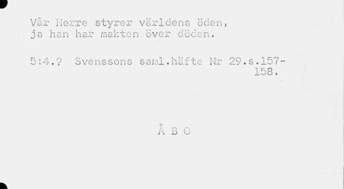 //// Vår Herre styrer världens öden? - ja han har makten över döden. //// 5:4.? Svenssons sarnl.häfte Nr 29. s. 157- //// 158. //// % //// I //// ¦ //// ÅBO //// k ////