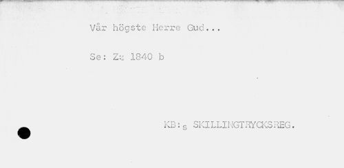 //// » « i,) * Vår högste Herre Gud... //// Se: Zz 1840 b //// / //// * //// KB:s SKILLINGTRYCKSREG. ////