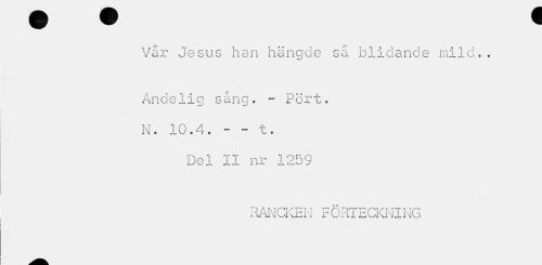 //// Vår Jesus han hängde så blidande mild.. //// Andeliq sång. - Port. N. 10.4. - - t. //// Del II nr 1259 //// RANCKEN FÖRTECKNING ////