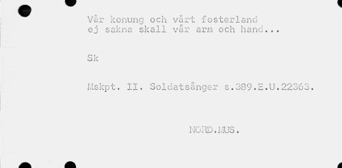 //// Vår konung och vårt fosterland ej sakna skall vår arm och hand... //// Sk //// Mskpt. II. Soldatsånger s.389.E.U.22363. //// NORD.MUS. ////