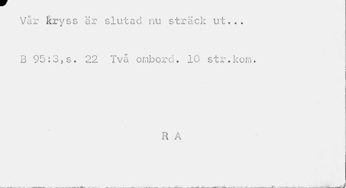//// Vår kryss är slutad nu sträck ut... B 95:3.s. 22 Två ombord. 10 str.kom. //// i //// R A //// _ _ så ////