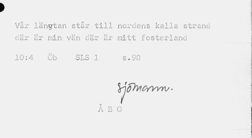 //// > //// Vår längtan står till nordens kalla strand där är min vän där är mitt fosterland //// 10:4 Öb SLS 1 s.98 //// O //// A B O ////