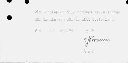 //// Vår längtan är till nordens kalla strand ^^ där är min vän där är mitt fosterland //// 9:4 LF INE 94 s.12 //// ÅBO //// / .. .f ////
