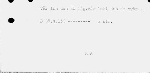 //// Vår lön den är låg.vår lott den är svår... ^ B 35,s.153 --- 5 str. //// e» //// ' » A //// R A //// 3 ////