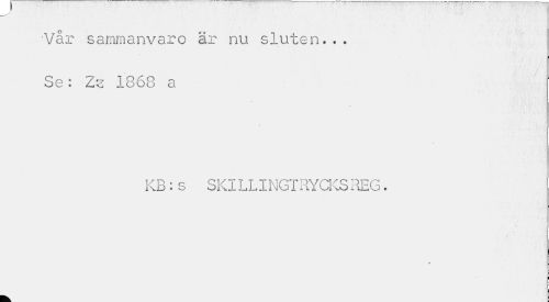 //// -V //// •Vår sammanvaro är nu sluten... Se: Ze 1868 a //// KB:s SKILLINGTRYCKSREG. //// i ////