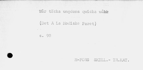 //// • - "' : Wår täcka ungdoms qwicka wåfah //// (Det A La Modiske Paret) s. 93 //// 1 \ //// ^ H-FORS SKILL.- TR.KÅT. ////