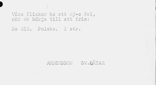 //// ¦ //// ¦¦••'. i" //// Våra flickor ha ett dj-a fel, när de börja till att fria: //// Da 313, Polska, 1 str. //// ANDERSSON SV.QATAR ////