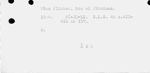 //// Våra flickor, kan ni förnimma, 19:4. FC»JO-LE. S.L.S. 46 s.412- //// l \l c //// ÅBO //// II ////