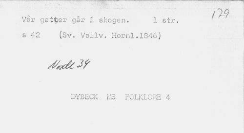 //// nc} //// Vår getter går i skogen. 1 str. //// .1 . " * ' • . • ; ; V J //// s 42 (Sv. Vallv. Hornl.1846) //// ] //// DYBECK MS FOLKLORE 4 ////