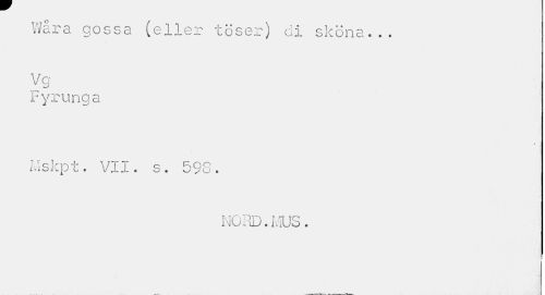 //// Wåra gocsa (eller töser) di sköna... Vg //// Fyrunqa //// u w //// t //// Iviskpt. VII. s. 598. //// NORD. 1.1US . ////
