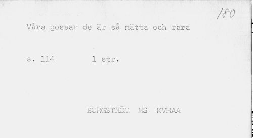 //// Våra gossar cle är så nätta och rara //// c //// s. 114 1 str. //// BORGSTRÖM MS KVHAA , ////