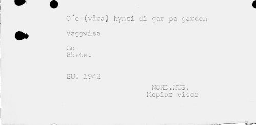 //// C)'e (våra) hynsi di gar pa garden Jfcfe Vaggvisa //// /""N //// Go //// T**"» 7 f //// \r c -J //// u cl « //// EU. 1942 //// NORD. MUS . Kopior visor //// ___———--¦— ////