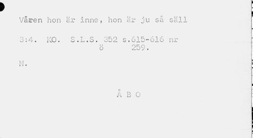 //// f //// Våren hon är inne, hon är ju så säll //// 3:4. KO. S.L.S. 352 s.615-616 nr //// ö 259. //// M 3 //// i 4 • F //// i //// k B O : ////