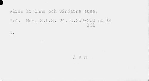 //// r //// Våren är inne och vindarna susa, //// 7:4. Net. S.L.S. 24. s.252-253 nr M //// 131 //// kl //// IM • //// Å B 0 //// i ////