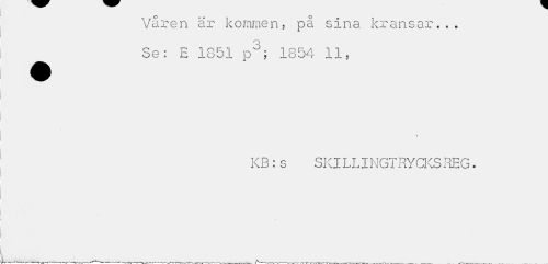 //// Våren är kommen, på sina kransar... Se: H 1851 pJ; 1854 11, //// KB: s SKILLINGTRYCKS REG. //// ...---— ---— ^o---—---A*—---—---___„___ ___ ////