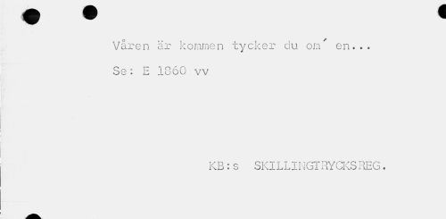 //// Våren är kommen tycker du om' en... Se: E 1860 vv //// KB:s SKILLINGTRYCKSREG. ////