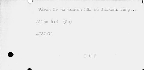 //// Våren är nu kommen hör du lärkans sång... Allbo h:d (Sm) 4737:71 //// c ////