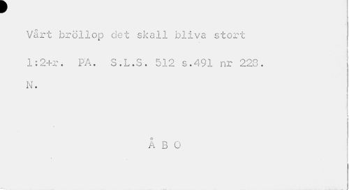 //// ¥ //// Vårt bröllop det skall ioliva stort //// 1:2+r. PA. S.L.S. 512 s.491 nr 228. N. //// ÅBO //// > ////