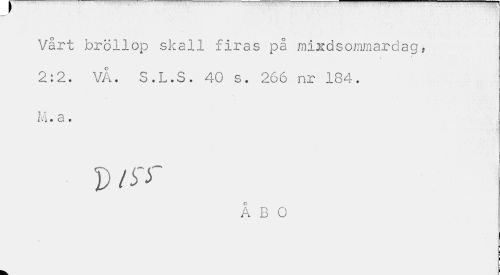 //// T //// Vårt bröllop skall firas på mixdsommardag, 2:2. VA. S.L.S. 40 s. 266 nr 134. //// M • 3 • //// v /SX //// Å B O //// \ //// k. ////