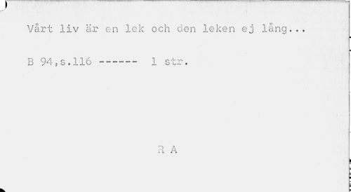 //// Vårt liv är en lek och den leken ej lång... //// i //// B 94, s. 116--- 1 str. //// R A //// | //// 1 i ¦ //// k. = ////