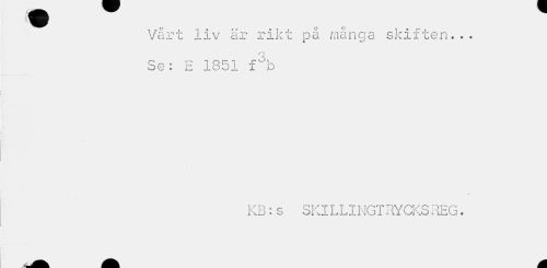 //// ' Vårt liv är rikt på många skiften..• //// Q //// Se: E 1851 f°b //// KB:s SKILLINGTRYCKSREG. ////