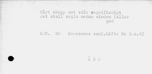 //// - //// Vart skepp det står segelfä-rdigt det skall segla medan vinden faller //// god //// v. //// 6:5. BO Svenssons saml.häfte Nr 2.S.42 ////