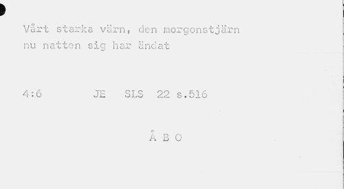 //// t //// Vårt starka värn, den morgonstjärn nu natten sig har ändat //// 4:6 JE SLS 22 s.516 //// C //// A B O ////
