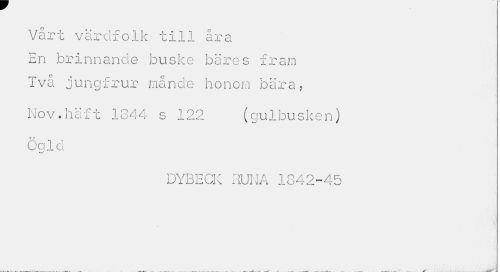 //// Vårt värdfolk till åra En brinnande buske bäres fram i v a ju n g x r u r m a n ci e h o n c m lo a r a, //// Nov.häft 1344 s 122 (gulbusken) //// * r //// * f //// Ögla //// DYBECK RUMA 1842-45 ////