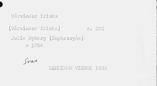 //// t //// Varvindar friska //// (Vårvindar friska) s. 292 //// Julie Nyberg (Euphrssyne) //// + 1054 //// BENDIXON VISBOK 1923 ////