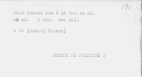 //// ,. J » ' 1 « '.> • " ,, "I* //// rt/ //// Vara kumers kom ä gä hem nu mä, //// i //// nm mä • 1 str. me cl mel. j //// s 33 (Moberg Except) //// H //// DYBECK KB FOLKLORE 3 ////