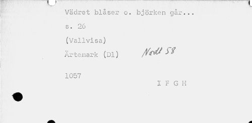 //// Vädret blåser o. björken går... //// Bi-. > 'Bl //// 3 • 2» o //// (Vallvisa) //// Ärtemark (Dl) M //// 1057 //// X F G H ////