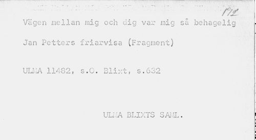 //// ... . . . :: ; .. • ... ^ Vägen mellan mig och dig var mig så behagelig //// Jan Petters friarvisa (Fragment) ULMA 11482, s.G. Blixt, s.632 //// U j—j i j i A b j-i X X lo o AI v iL • ' //// ¦ //// ¦ //// - ////