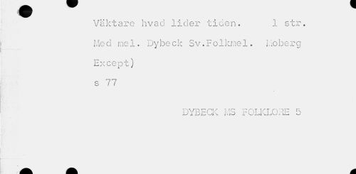 //// Väktare hvad lider tiden. 1 str. //// Me o me1. Dybe ck Sv.Folkme1. Moberg Except) s 77 //// DYBECK MS FOLKLORE 5 //// A, A m ////