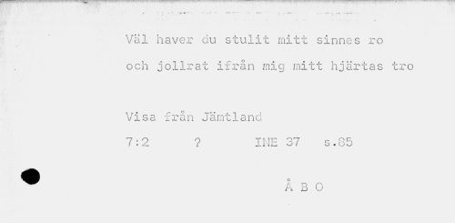 //// « « ' , ' » ' //// • - '• a. //// Väl haver du stulit mitt sinnes ro och jollrat ifrån mig mitt hjärtas tro //// Visa från Jämtland //// 7:2 ? INE 37 s.35 //// ^ A B O ////