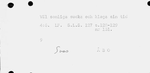 //// Väl somliga sucka och klaga sin tid //// 4:6. LF. S.L.S. 127 s.128-129 //// nr 131. //// Q //// ^ Å B O ////