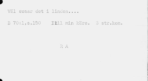 //// w //// Väl susar det i linden... B 70:1.s.150 Iill min kära. 3 str.kom. //// "n A //// n /-k //// k ////