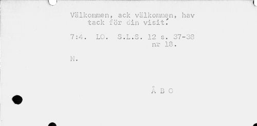 //// Välkommen, ack välkommen, hav tack för din visit.' //// 7:4. LO. S.L.S. 12 s. 37-38 //// nr 18. //// N. //// o //// a p n. //// i-v U w ////
