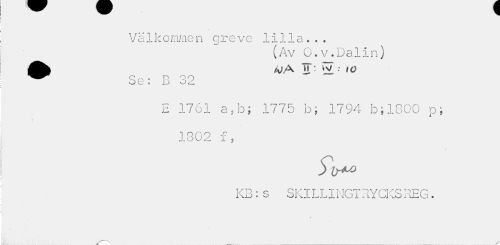 //// Välkommen greve lilla... //// (Av 0.v.Dalin) //// åfe • »o //// ^^ c~ c p o o //// oe « u //// E 1761 a,b; 1775 b; 1794 b;1800 p; //// I //// 1302 f, //// » //// ) //// 1-vjJ c o SKIL] _iä_i IG i äi OKS ilhG. ////