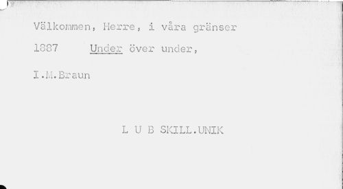 //// Välkommen, Herre, i våra gränser 1887 Under över under, //// 1.1/1. Braun //// L U B SKILL.UNIK ////