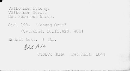 //// V ä 1 k o mme n f ly k o n g , Välkommen Herre. Lee korn och kärve, //// C 4 r' 1 OR fl ],' r, n¦, n rv C)-po sf //// o r g « r z.vj . ko nu i X //// [ov . i- oms . iJ . ill . SIG . J //// i //// Endast text. 1 str. //// DYBECK RUNA KDec.häft. 1844 //// .' 1 | //// ¦ //// ___ ___ ___rr-É^f-niV! . - ___ ___-—-v_K--*---*--- A --- .JM mÉLA___hiÉMli'infr---mM i ////