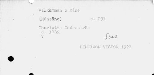 //// "" -V* //// ' ' . I //// Välkommen o måne //// \ //// (Månsång) s. 291 //// Chorlotte Cederström //// r,1 1 o o o //// Li • J-OvJ^ //// ? Sb*o //// BEMDIXON VISBOK 1923 ////