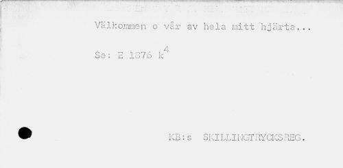 //// Välkommen o vår av hela mitt hjärta... Se: E 1376 k4 //// ® KB:s SKILLINGTRYCKSREG. ////
