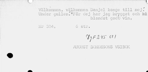 //// Välkommen, välkommen Danjel konge till mej. Under gullenfHFör dej har jag bryggat och fei //// blandat c o dt* vin, //// T- T ^ A 1 //// h\ r - Z r- c t ? //// ,i si JL JU i $ vj o • //// QS^ÅVT t? I //// AUGUST BONDESONS VSIBOK ////