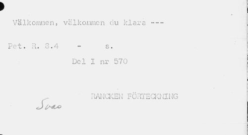 //// f //// Välkommen, välkommen du klara ---! //// Fet. R. 8,4 - s. //// Del I nr 570 //// RANCKEN FÖRTECKNING //// cJ és^Uo ////
