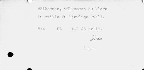 //// Välkommen, välkommen du klara Du stilla du ljuvliga kväll. //// 5:4 PA INE 46 nr 16. //// Jtf^U) //// Å B O ////
