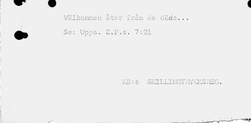 //// Välkommen åter från de döda... ^^ Se : Upps . Z. P. s . 7 : 21 //// KB : s S Kl L LI NGT RY CKS RE G. ////
