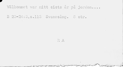 //// Välkommet var mitt sista år på jorden... B 23-24;3,s.113 Svanesång. 8 str. //// i //// \ //// T) A //// ¦¦— * / \ //// i l JA //// ¦I //// ( //// < ////