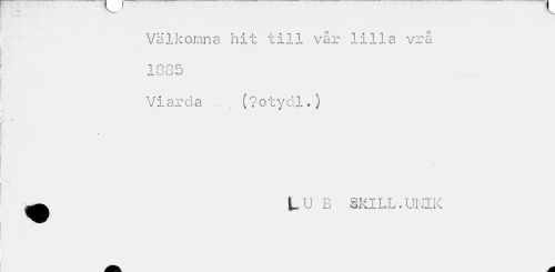 //// ^— ^ //// Välkomna hit till vår lilla vrå 1885 //// Viarda ... . (?otydl.) //// . 4 //// % //// ^ UU B SKILL.UNIK ////