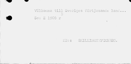 //// Välkomna till Sveriges förtjusande land... //// o O //// KB:s SKlLLINGTRYCKSREG. ////