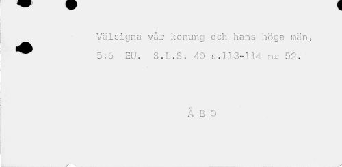 //// Välsigna vår konung och hans höga män, 5:6 EU. S.L.S. 40 s.113-114 nr 52. //// ÅBO ////